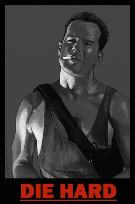 Yippee ki yay, seasons greetings and Merry Christmas to all my twitter buds! I'll be watching Die Hard as always so here's some festive McClane fan art to brighten your holiday feed. 🎄