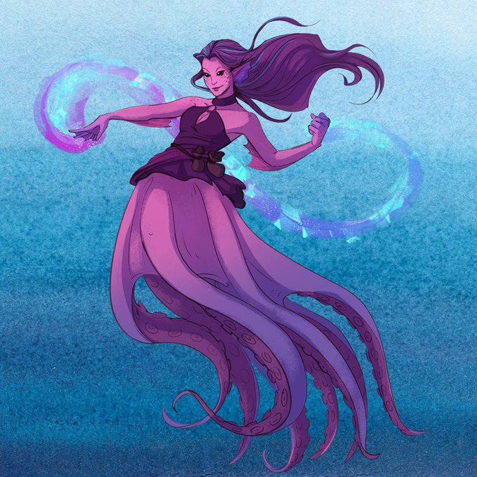 Twilight Sky is a cecaelia sorcerer wandering the world. Cecaelias are a new player option in Under the Seas of Vodari (coming soon). Artwork by @AraArt6 #dndart #dndcharacter #dndcharacterart #charactercreation #characterdesign #dndartwork #dnd #dungeonsanddragons