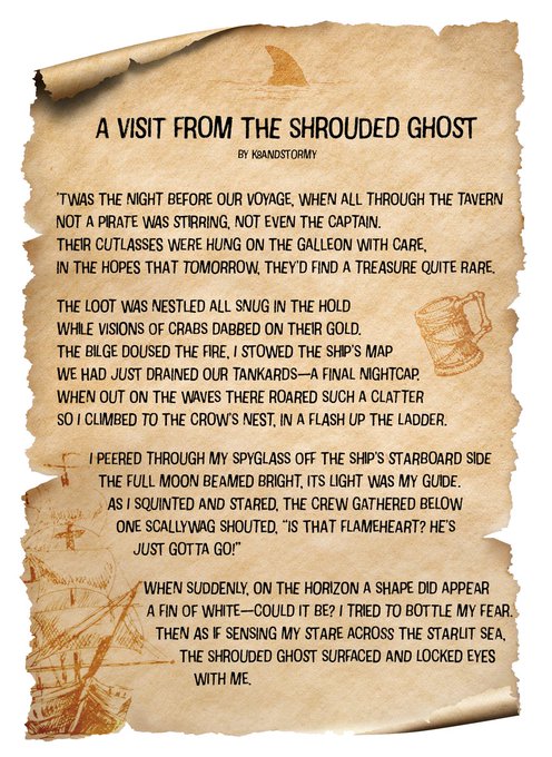 I wrote “A Visit from the Shrouded Ghost” (an adaptation of “Twas the Night Before Christmas”) for @SeaOfThieves pirates to read together during the holidays.