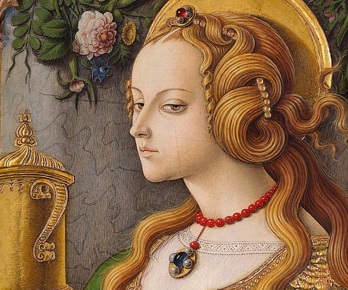 Mary Magdalene, with extraordinary hands and the ultimate in side-eye. Painted by Carlo Crivelli, whose day is today.