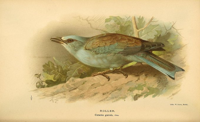 The European roller (Coracias garrulus) for #Feathursday! #SciArt by Archibald Thorburn for Lilford's "Coloured figures of the birds of the British Islands" v. 2 (1885-1897). In #BHLib via @AMNH: https://t.co/GZymSNrxTn #bird