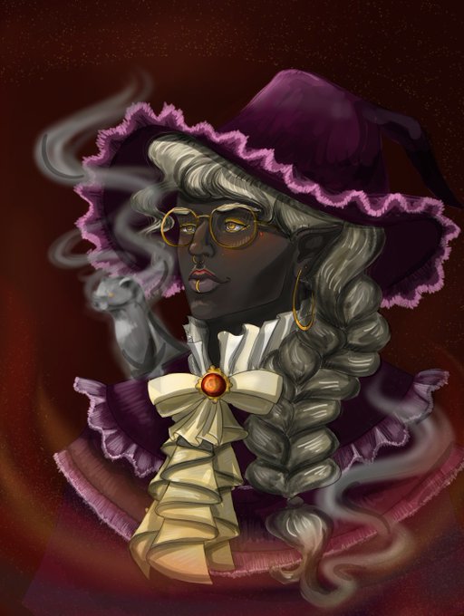 New DnD character time, babey! My fab fire genasi wizard, Cinter duFlammes of the High Streets, ready for tonight's oneshot #dungeonsanddragons #dnd #dndoc #art #characterdesign #dndart #clipstudiopaint