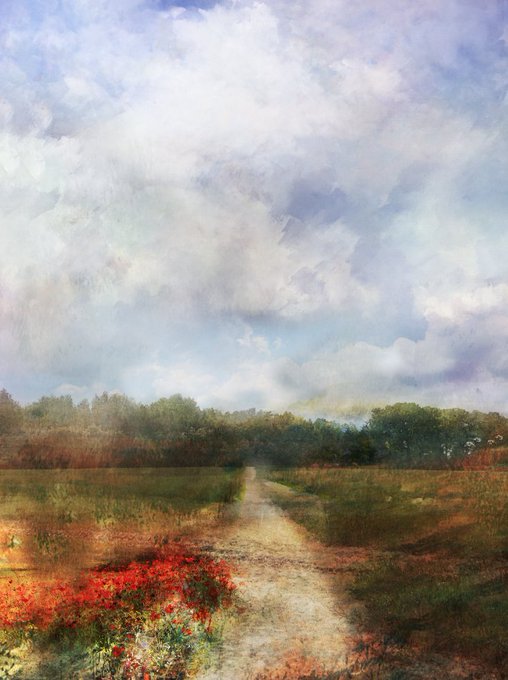 Poppies line the lane & the path towards the Kite Copse, a quietly tentative walk as Lapwings were nesting, listening to whilst working &