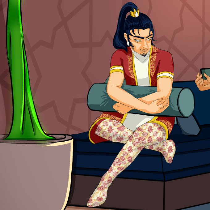 The plan: convince shafon to accept help from the palace by baiting him with princess Zuri. (Spoilers: it doesn't end well) All 5 princes from The House of Leora just chilling in a meeting room drawn by the lovely @DevilishComics for the @quack_toons background swap!!!
