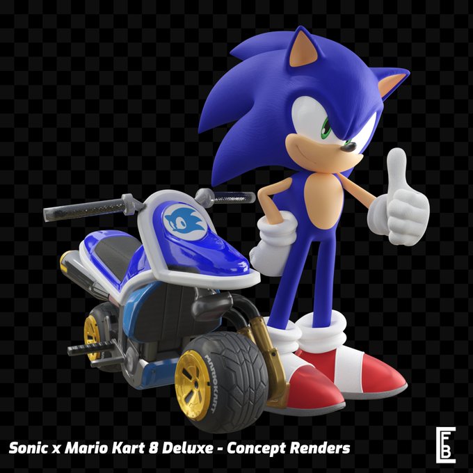 What if, Sonic was added to #MarioKart8Deluxe as a guest character. Made some concept renders for such an idea.