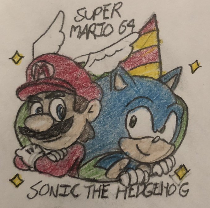 Happy 29th Birthday, Sonic! But that’s not all...it’s also Super Mario 64’s 24th anniversary! #SonicTheHedgehog #Sonic29th #Sega #Mario #SuperMario64 #Nintendo