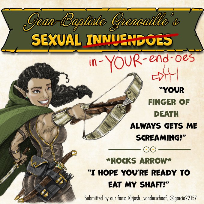 Friends and foes beware, nothing brings a battle to a screeching halt like Jean-Baptiste Grenouille's unbearable innuendoes!