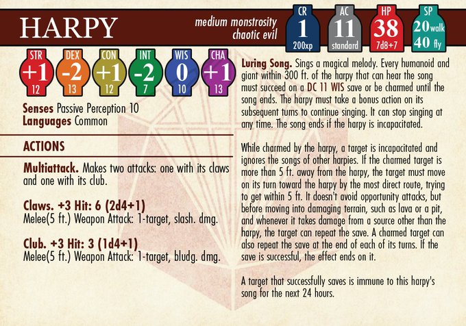 The harpy sings a beautiful and alluring song to attract her prey, which can be difficult to enjoy when she’s clawing your face off.