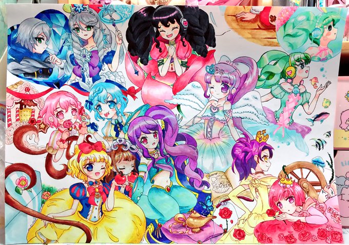 プリパラまでのアイドル集合絵、やっと完成した〜😂