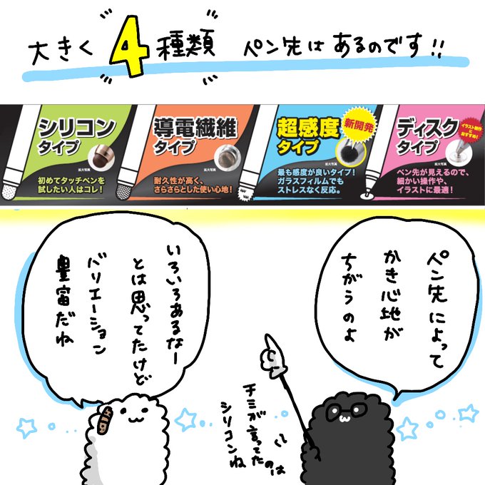 最近はタッチペンの先端もいろいろな種類が増えました。の回