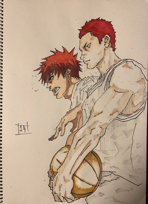 今回はスラムダンクの好きなキャラということで、私は桜木花道を、フォロワーの栞さんは彩子を描きました🎶