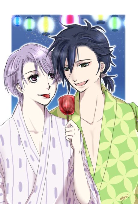 今日のらくがき島峯。浴衣デートの夕暮れキッス。