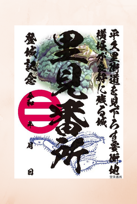 3城目は、#丸城(千葉県南房総市)。ゆかりの山門をデザイン。道の駅「とみうら枇杷倶楽部」、「三芳村郡の里」、「ちくら潮風王国」、「冨楽里とみやま」、「和田浦WA·O!」、「ローズマリー公園」にて300円(税込)。