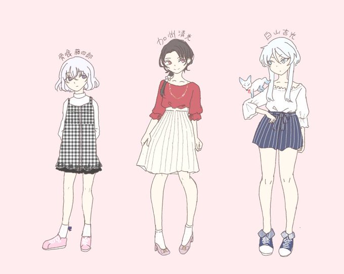 # リプきたキャラに私服着せる できました~🙌 薬研加州白山ディオ様なんですけど、私服で黒手袋も髪とめる白いやつも頭にハートもつけてません!狐も飼ってません!