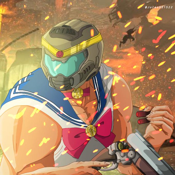 Yui x DOOM commissioned by @Seanzeug <3 #けいおん #平沢唯 #DOOM #DoomEternal #commission