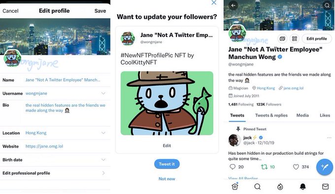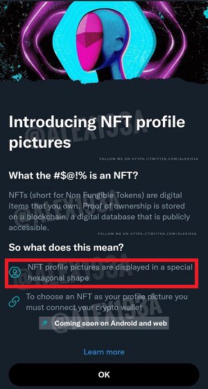 A very interesting development in @Twitter’s plans to verify NFT ownership via profile images opting for “hexagonal to stand out more in feeds & prompting users to alert their followers.”