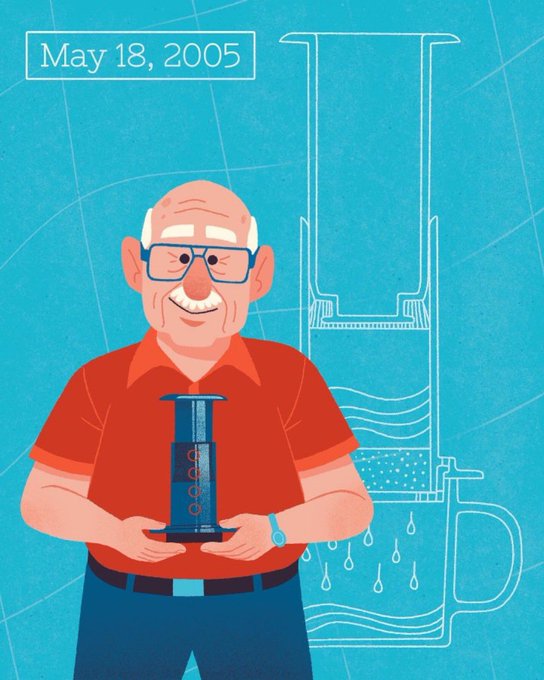 Hey today is the day the @AeroPress was invented! Coincidentally giving away a $50 gift card to GM someone. Art by @KeniChaffee https://t.co/WABv5mVt8k