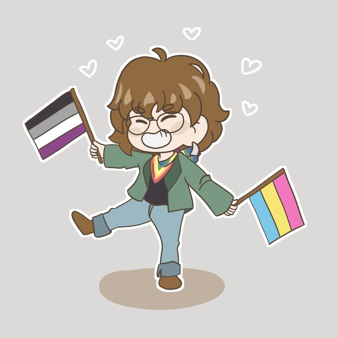 @Sarah_Cosgriff @asexuality Hey Sarah! I'm Julie (she/her), a canadian pan-ace who works as a web designer/dev during the day and writes fanfic by night. Also trying to improve my drawing, so here's a chibi me I drew for pride!