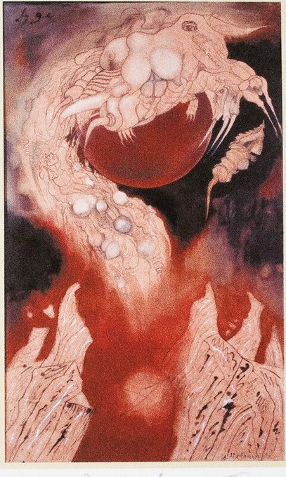 Andrzej Strumiłło (1928-) ~ Illustration for the Apocalypse 6.1 , mixed media on paper , date unknown. #art #artontwitter #Illustrator #andrzejstrumillo #apocalypse