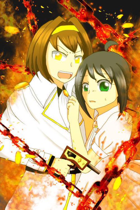 そういや以前描いたうちよそコラボと雰囲気似てるなーと思って比較してみたけど、片方は騎士と姫で、もう片方が戦友同士の共闘みたいに見えるから真顔になってる