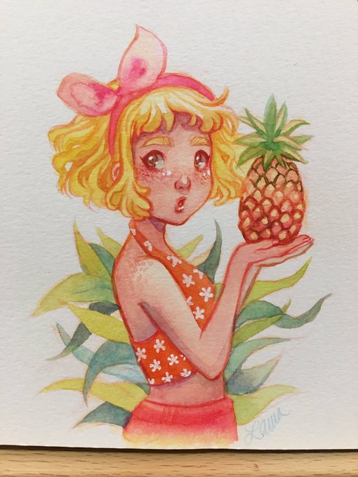 Acuarelita que no termina de convencerme pero... ¡a otra cosa mariposa! 🍍🍍