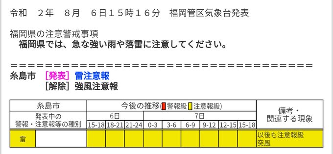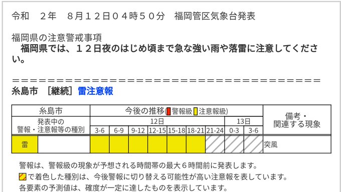8月12日(水)の #福岡県 🌦️⚡