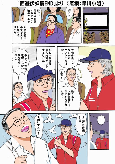 「星仔、防疫映画にゲストで出ればよかったのに。イヤミな監督役とか広い層に喜ばれたのでは?」と言ったのに、早川様が「こうだったら…」と話し出したのが余りに面白かったので、案を頂きました。「最後はバックにハトと後光を」との事でしたが、力足りずハトだけになりました。リプは広東語版です。