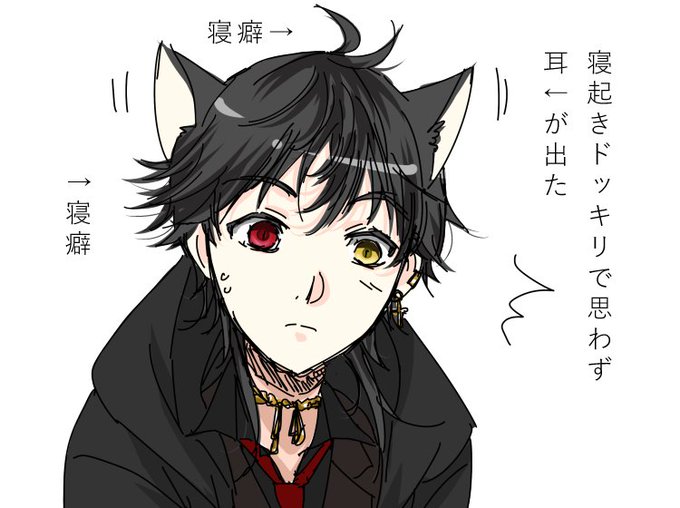 @itoaya_si ちょっとずつ消化することにしました!申し訳程度の寝癖要素と猫?耳。本当はコウモリの耳なのですが何故か妙にもふもふしてるので猫耳に見えるという設定で乗り切る。そして汚い。