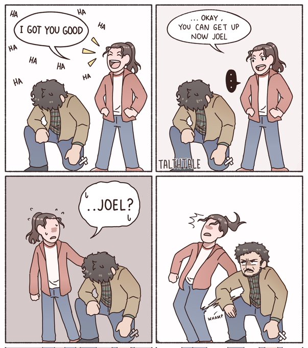 Ellie after she learned kicking someone in the back of their knee made them fold: