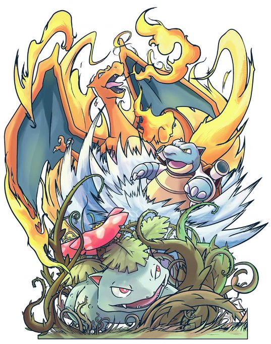 An old drawing I made ❤️ art by me @blue_pokeball #pokemon #pokemonart #art #charizard #venusaur #blastoise #gen1 #kanto #swordandshield #gen8 #galar #commissionsopen