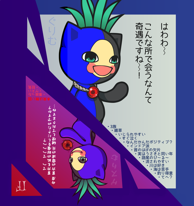 【ぐりむ(+IF)】IFの欠片の力を使い先祖であるてまりさんをお持ち帰りしてきちゃった雑草。時々、IFの欠片の扱いについててまりさんから釘を刺される事がある。…もしや、てまりさんはIFも見えているんだろうか…? #電波らくがき