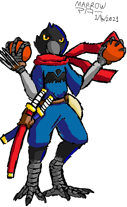 @EquinoxTheGryph Alright then, coming from my D&D campaign comes Rin, AKA: "Power Bottom Bomber" and "King of the Gays" He's a ninja, he likes liberal use of high powered explosives, and he likes men. I have other Avian characters but he's one of my favorite characters in general.