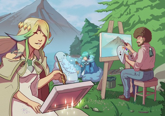 @MustrdBucket I have 2 main characters, Theo is my sona and then Bauble is sort of like... half-sona-half-oc. Theo's a little bee fella and Bauble is a magma cube person :]