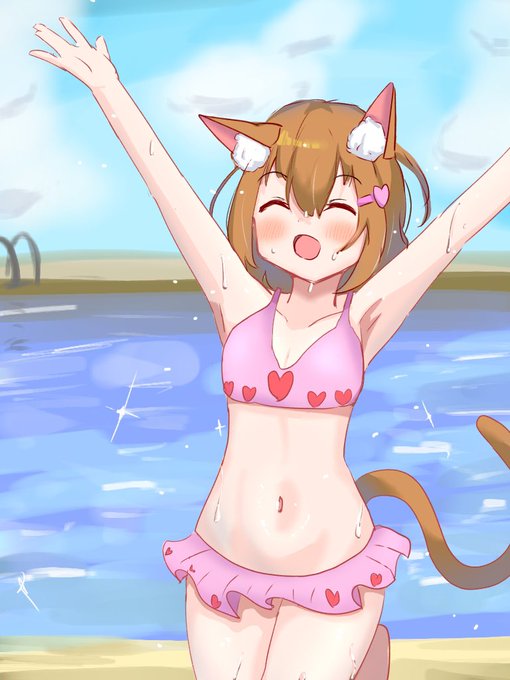 #ビキニの日 #ビキニスタイルの日 再掲👙 #illustration #drawing #アナログ絵描きさんと繋がりたい #アナログイラスト #ArtistOnTwitter #Artist #絵描きさんと繫がりたい #イラスト好きな人と繋がりたい #夏のクラスタフォロー祭り #猫耳 #オッドアイ #オリキャラ
