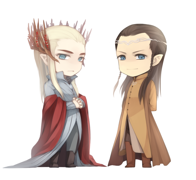 (ฅ・ิω・ิฅ)ET,不知道身高只好畫一樣高...雖然我總覺得Elrond應該比Thranduil矮一點....