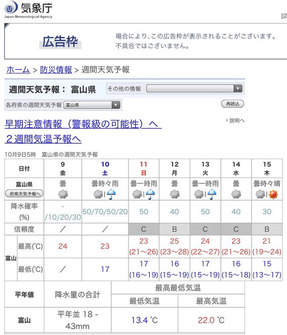 【富山県内気象情報】おはようございます。高気圧に覆われますが、上空の気圧の谷や台風周辺の暖かく湿った空気の影響を受ける見込みです。このため、曇りで夜は雨の降る所があるでしょう。