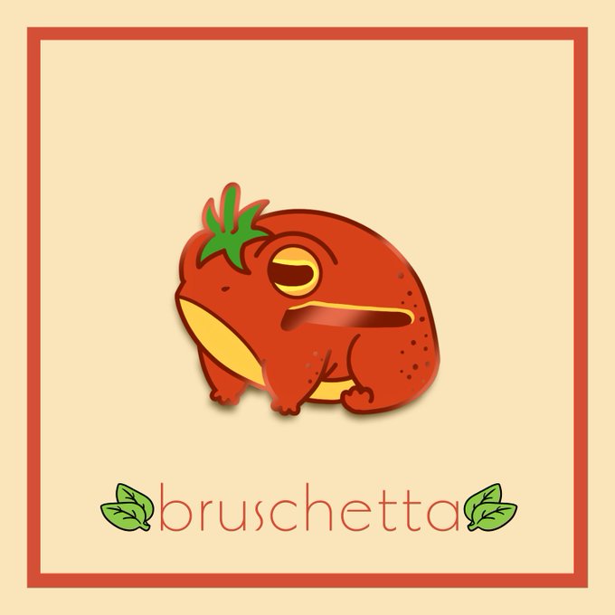 New pin preorder: Bruschetta the Tomato Frog! It'll be hard enamel with a dyed soft enamel variant