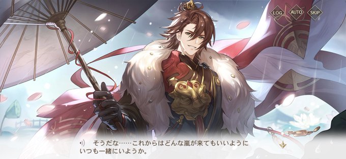 これは石亭の戦い後凱旋した陸遜さんを出迎えて蓋を差し掛けてあげているところと見せかけて、船上で宴会中に雨が降ってきて濡れないようにと劉基さんにだけ蓋を差し掛けてあげている孫権さま