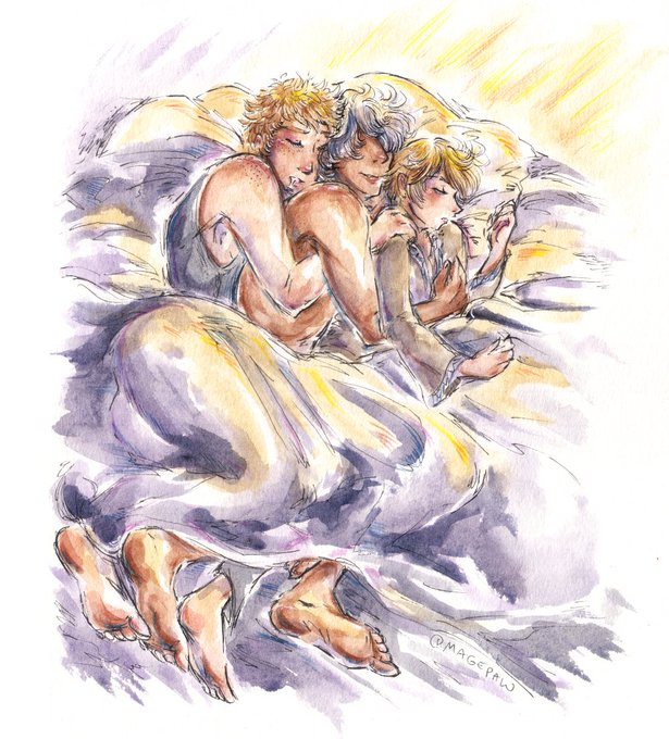 new year new niles 💘 surprise @DorkPatroller i'm your @NilesNetwork secret santa here is a morning blanket pile of leo trio!! thanks for giving me the poly option so i didn't have to choose who gets cuddles 😭 this is also, the first half,, there is another thing on the way~ :3c