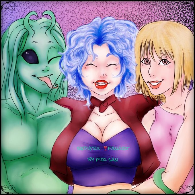 First is a fanart of @redveril 's OCs polycule Lemon-chan, Poppy and Toby~