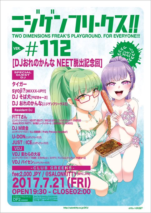 ニジフリ12.0の話題で持ちきりですが、7/21はニジフリGREENSです!「DJおれのかんな」のニート脱出記念祭となっておりますのでみなさま奮ってご参加下さいますよう(^ν^)