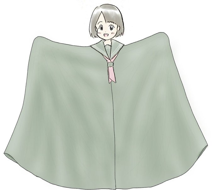 pさん(@p_san0320)の秋ちゃんのセーラー服をベースにしたてるてるマント、こちらはマントを勢いよくバサッと広げた姿