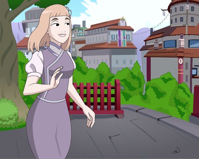 Suika: Boruto character w/almost 0 fanart. Her name's not even told in the show (I think) & she's only at her desk. I like her look and personality! 🙂 Drew the Village on paper from a reference screengrab. All rights to Viz. #FanArtFriday #fanart #BorutoNarutonextgenerations