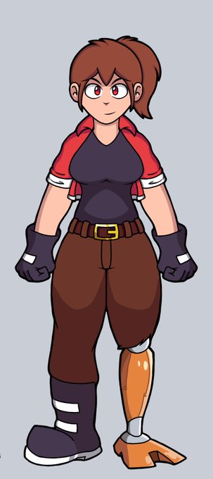 Also I changed her mech leg a little and made her pants leg torn