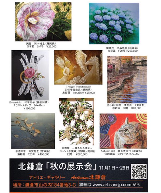 入選致しましたので11/1〜26北鎌倉のギャラリーArtisans 北鎌倉にて出展いたします!