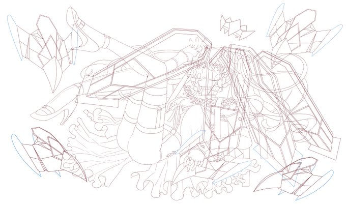 #皆さん線画と塗った後を見せてください いまはよくラフからの清書きなので線画はないですか