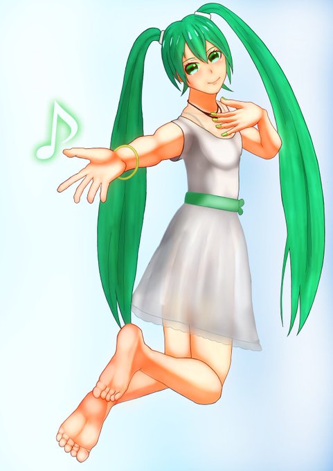 初めて初音ミク描いたけどやっぱ長い髪ムズイ(´・ω・`)