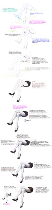 今回新たに描いたスケッチを元に、【脚(ニーソ)とハイヒールの構造と作画の解説、塗り方のコツ、ハイライトのいい感じのつけ方、影色やオーバーレイの色をベタで表示、その他考え方の解説など】制作しました!イラスト制作のご参考に!