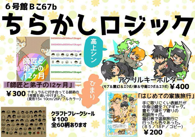 1月8日インテは6号館Bこ67bにいます!霊モブ!ひまりさん(@crksp )と合同スペースです!アクキーとコピー本があるよ!!久しぶりのイベントすぎて不安しかないので一緒に行ってくれる人いてよかった💦遊びに来てください✨