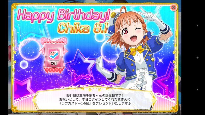 千歌ちゃん誕生日おめでとう!いつもアニメでは千歌ちゃんに癒されてます今日1日ずっとお祝いするね♪